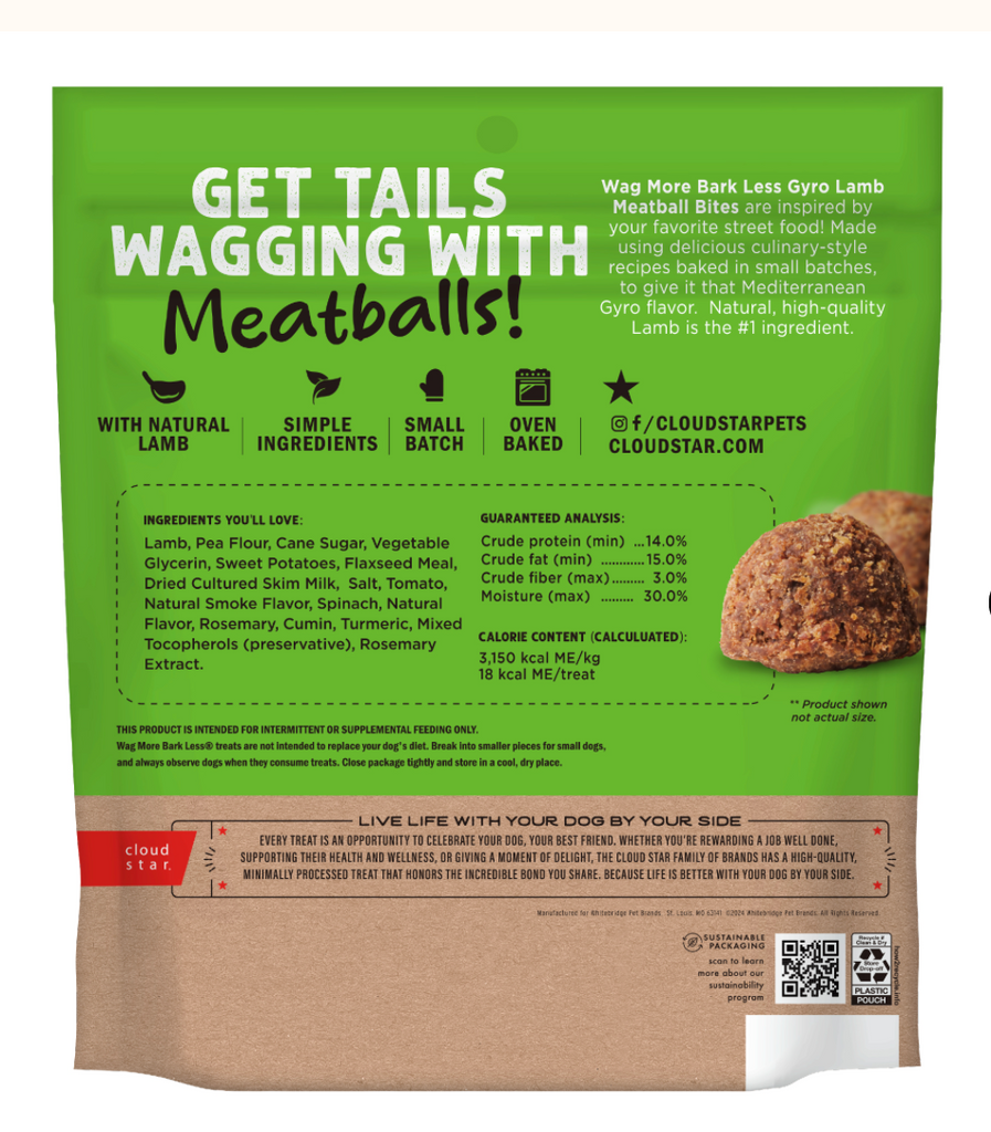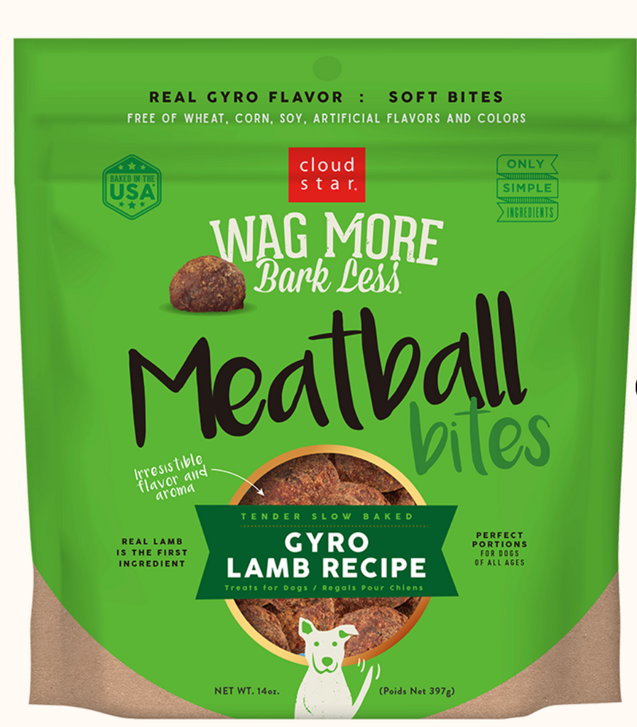 WAG MORE BARK LESS GRAIN FREE MEATBALL BITES DOG TREATS, GYRO LAMB RECIPE