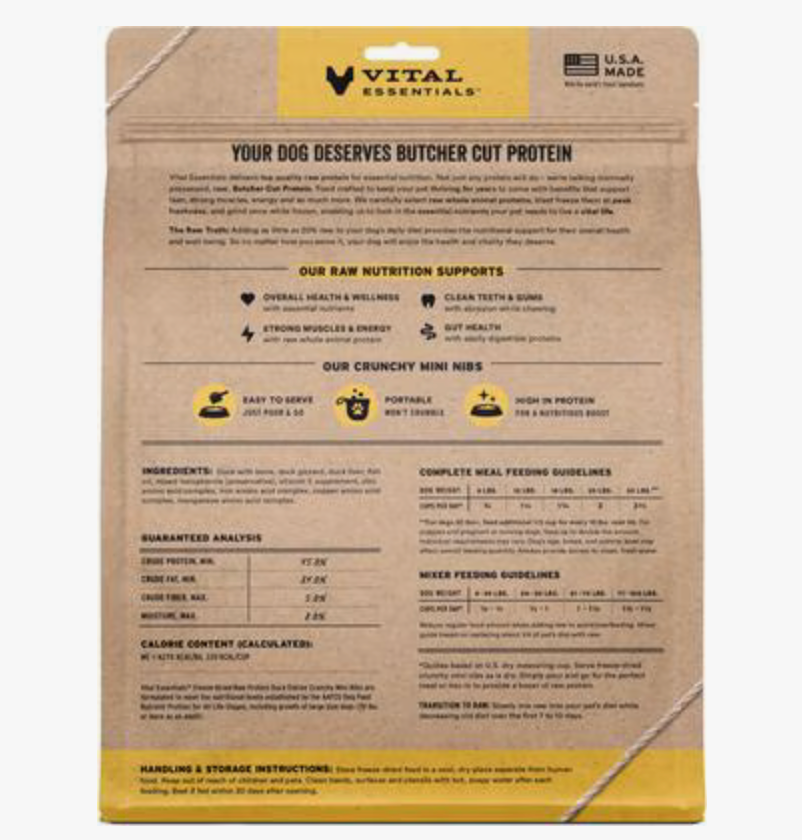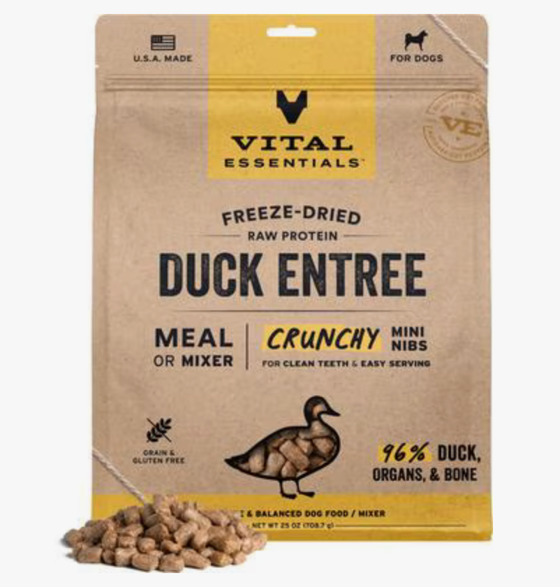 Vital Essentials Freeze-Dried Raw Duck Entree & Mixer Dog Food Crunchy Mini Nibs, 25-oz bag