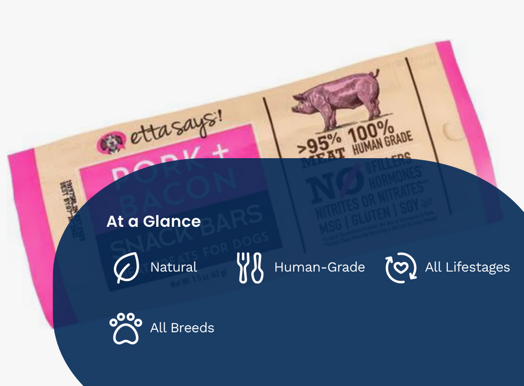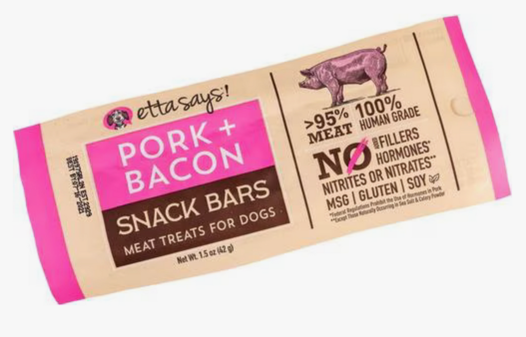 Etta Says! Pork + Bacon Snack Bars Human Grade Jerky Dog Treats, 1.5-oz bar, 1 count