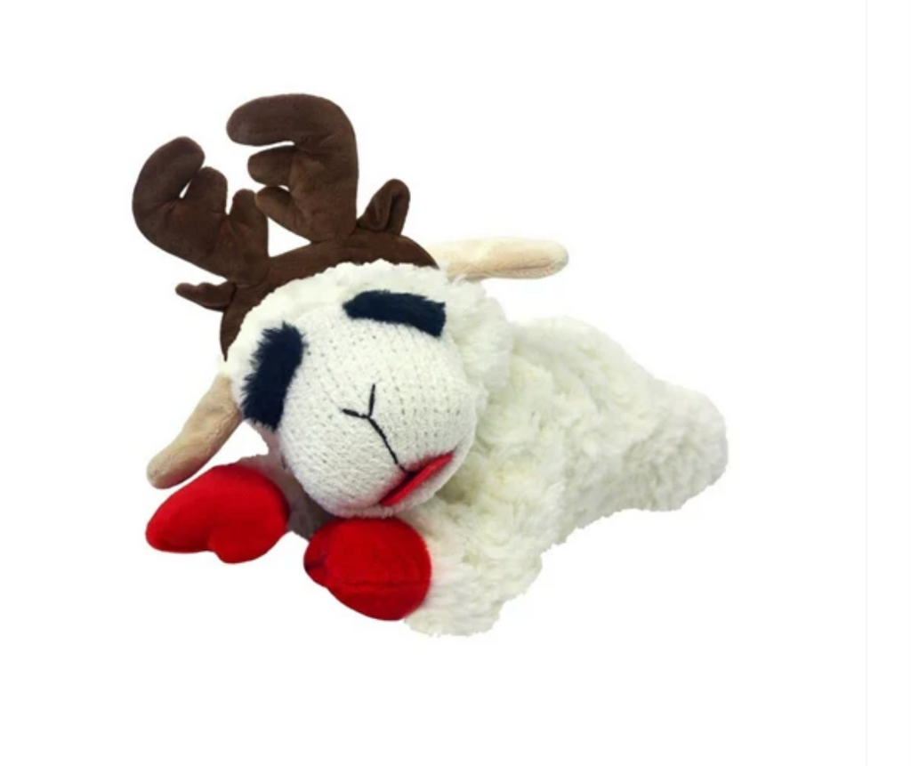 Multipet Holiday Lamb Chop w/Antlers Dog Toy 10.5"