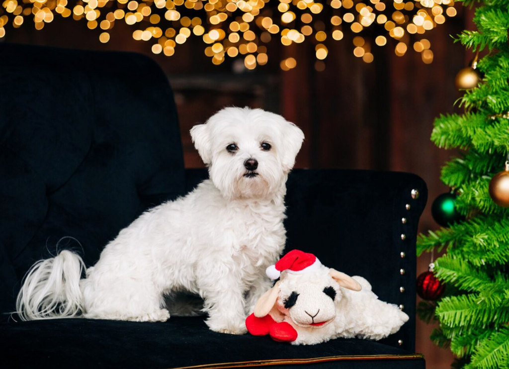Multipet Holiday Lamb Chop with Santa Hat Plush Dog Toy