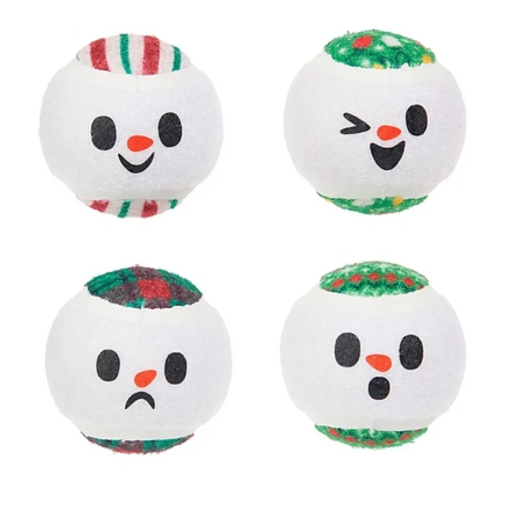 Add some fun bouncing friends to your dogs playtime with the silly BARK Holiday Tennis Balls Dog Toy Snowballers!