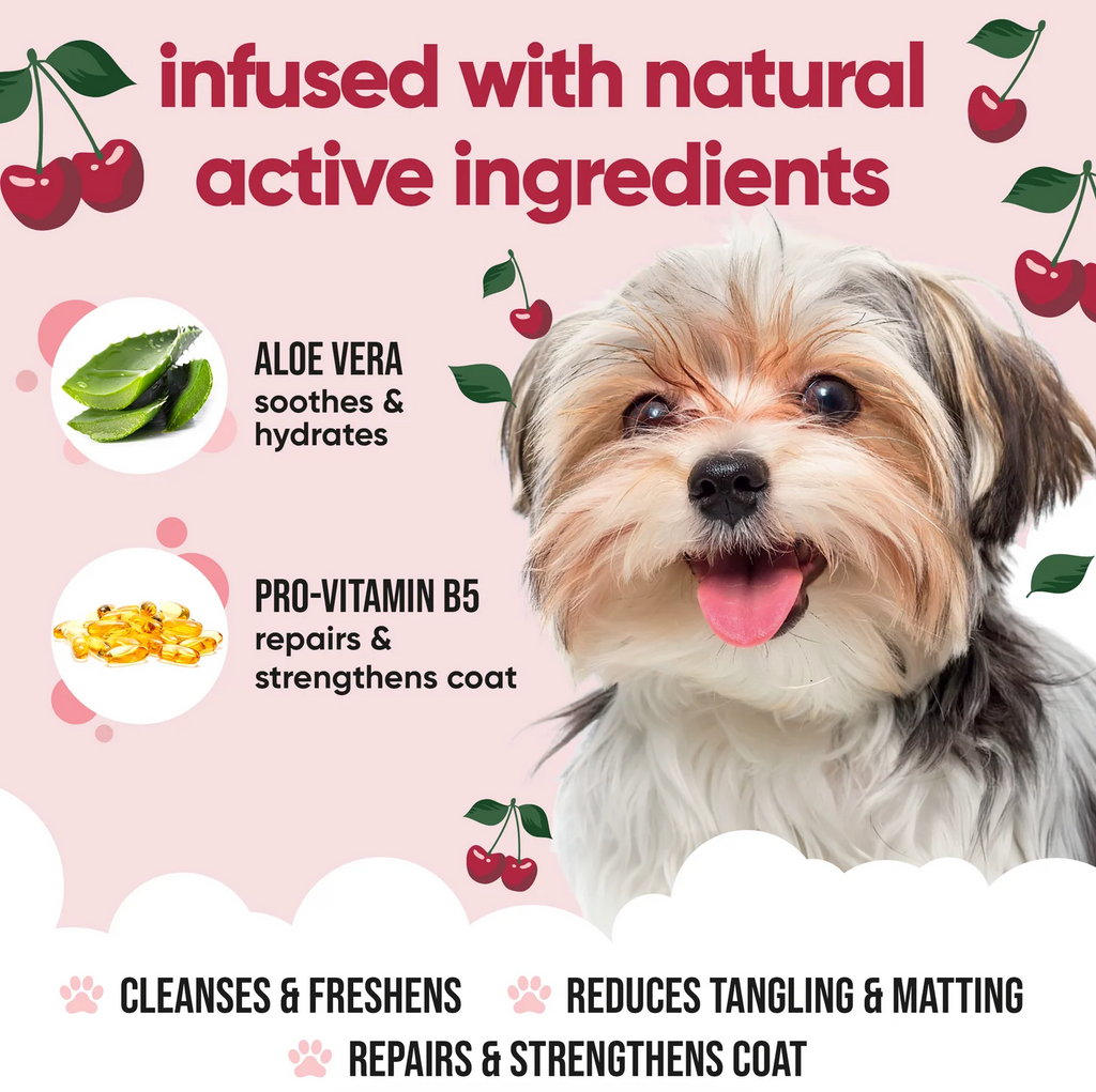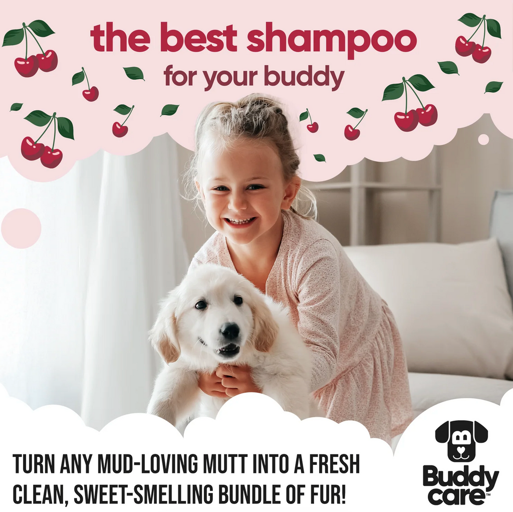 Buddycare's Black Cherry Dog Shampoo is a gentle shampoo that's specially formulated to remove dirt and grime while leaving your pup's coat soft, shiny, and irresistibly huggable. Indulge your furry friend with the captivating scent of black cherries while providing them with a deep and thorough clean. You'll enjoy a fresh and clean companion with a distinct and intensely rich, fruity fragrance.