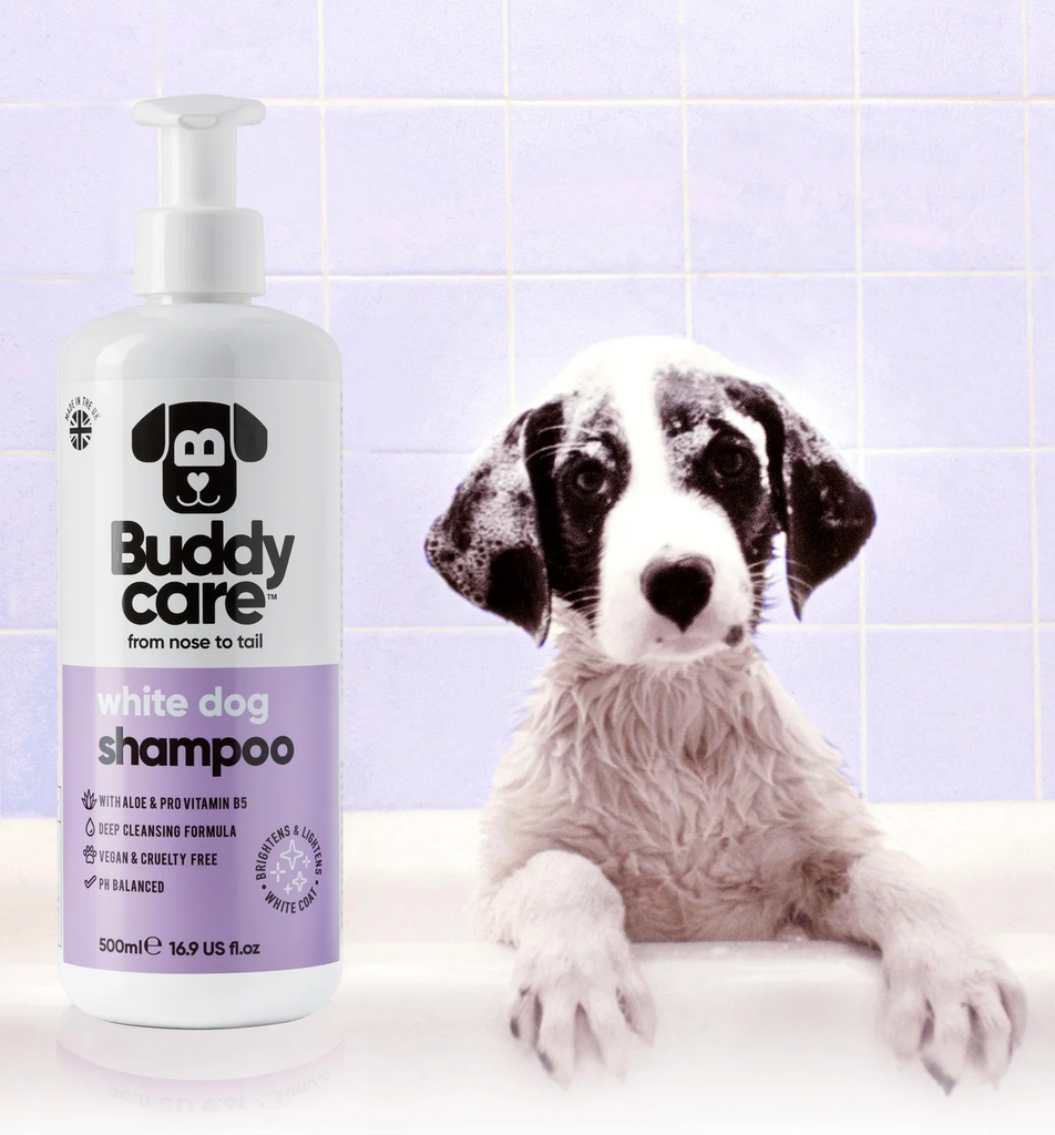 Buddycare’s White Dog Shampoo is specially formulated to brighten and lighten white coats, so even if your dog isn't called ‘Snowflake’ they might just earn the nickname! And don't worry - the shampoo’s purple colour is all part of the magic!