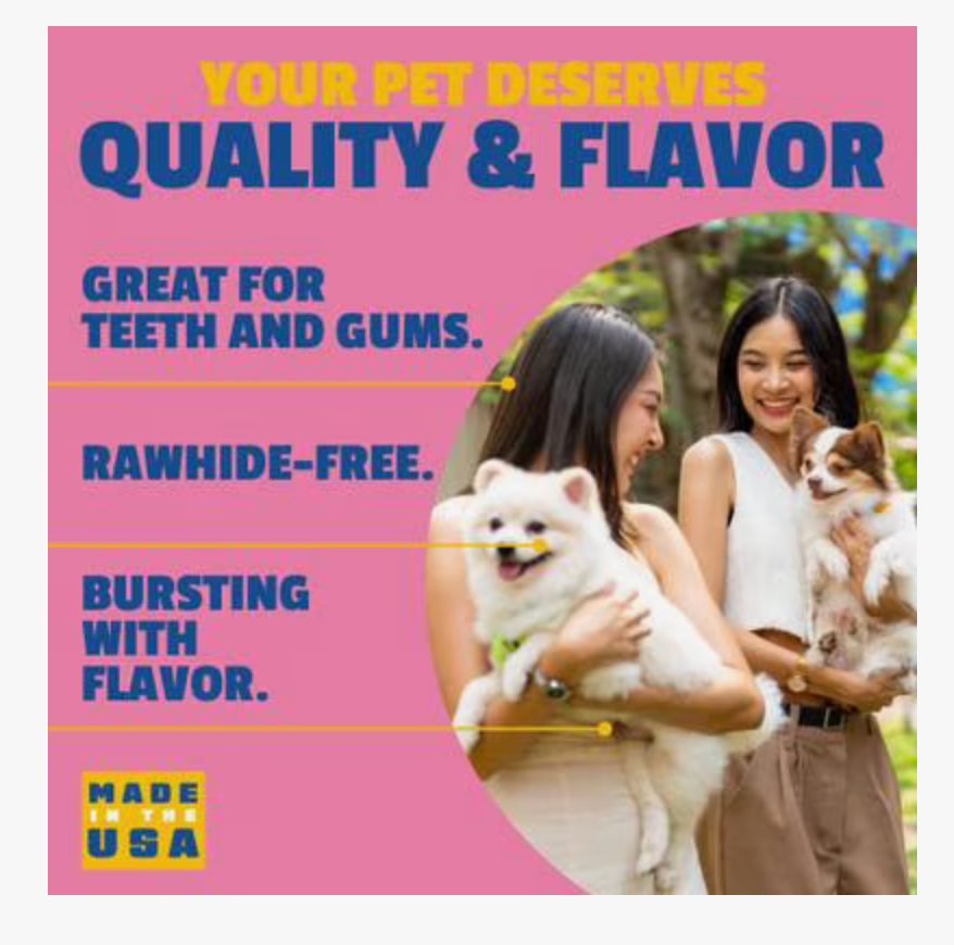 Treat your furry companion to a delicious and beneficial snack with Etta Says. Fusion Gourmet Adult Salmon & Sweet Potato Flavor Natural Dog Chew Treats. These chewy treats not only satisfy your pup’s tastebuds but also support his dental health. The star shape is specifically designed to help clean teeth and massage gums while your barking BFF chews, supporting fresher breath and healthier teeth. Made with high-quality, all-natural ingredients in the USA, these chews are a guilt-free indulgence for your pup. With six fusion flavors in each pack, your four-legged family member will never get bored of the tasty variety. Plus, the individually wrapped chews make them easy to take on-the-go or use as a special reward at home.