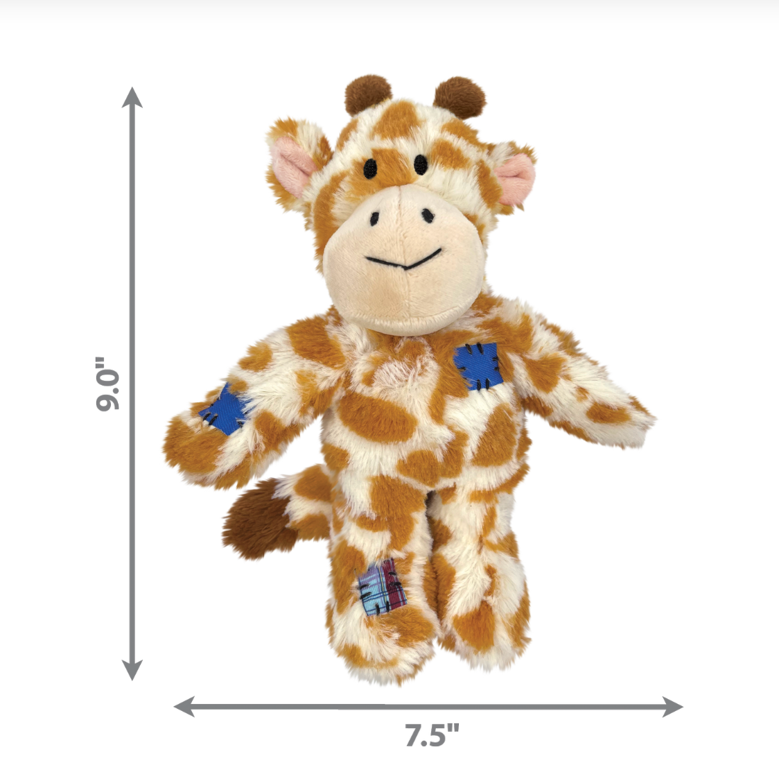 KONG Wild Knots Giraffe is soft and cuddly on the outside yet durable and strong on the inside thanks to a rope skeleton that satisfies dogs’ natural instincts. Squeaks and crinkles extend the safari while minimal stuffing means less mess. Plush body is great for snuggling on the savannah—or sofa.