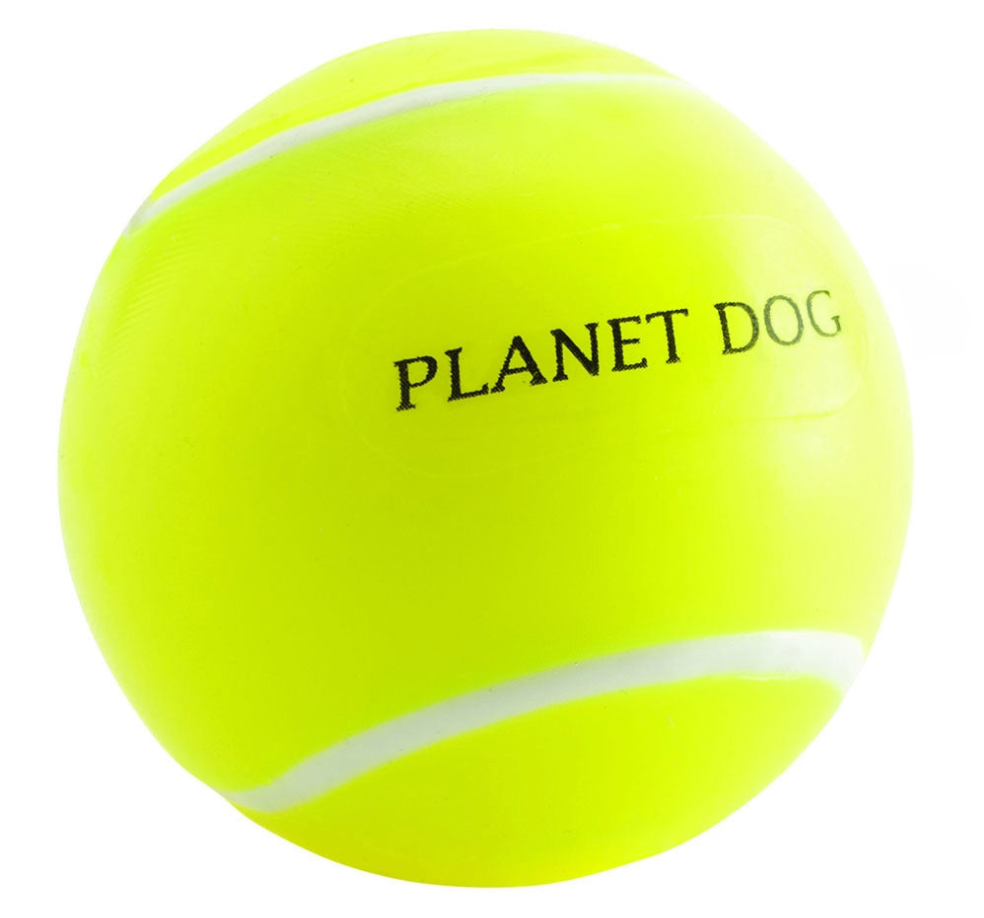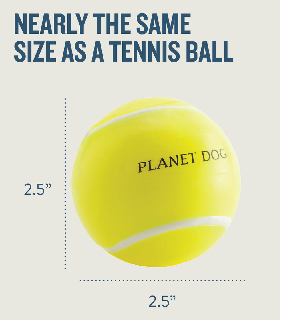 Time to play ball with Planet Dog's Orbee-Tuff Sports line! With different sizes and sports to choose from, you're sure to find your dog's new favorite all-in-one fetch, chase, and chew toy! Each ball comes with holes on either side to stuff with treats to keep your dog stimulated and keep their cravings at bay. All Orbee-Tuff toys are made from a durable TPE material that is BPA, lead, and phthalate-free. Clean with warm water, mild soap and rinse. Not all sizes are suitable for all chewers and all sizes. Sizing: The Orbee-Tuff Tennis ball is 2.5" in diameter, has a classic look and is great for small dogs.