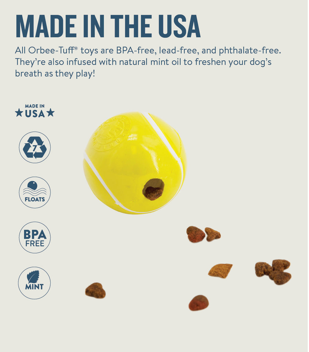 BPA, PHTHALATE, & LEAD-FREE: All Orbee-Tuff Sports products are made with TPE material that is BPA, lead, and phthalate-free. Flavored with natural mint oil, these dog toys will also help freshen your dog's breath as they bite.