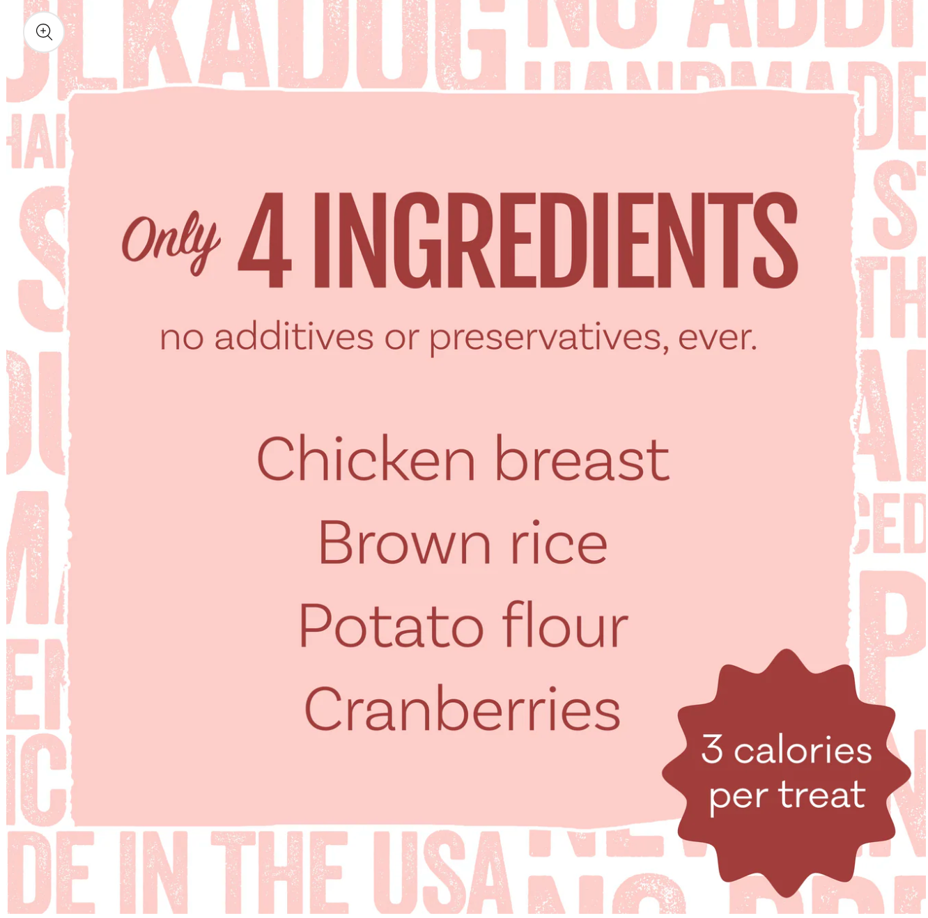 Crunchy and tasty, with dehydrated chicken breast and local Massachusetts cranberries, these limited ingredient crispies are taking the canine and feline treat world by storm. Heads up!