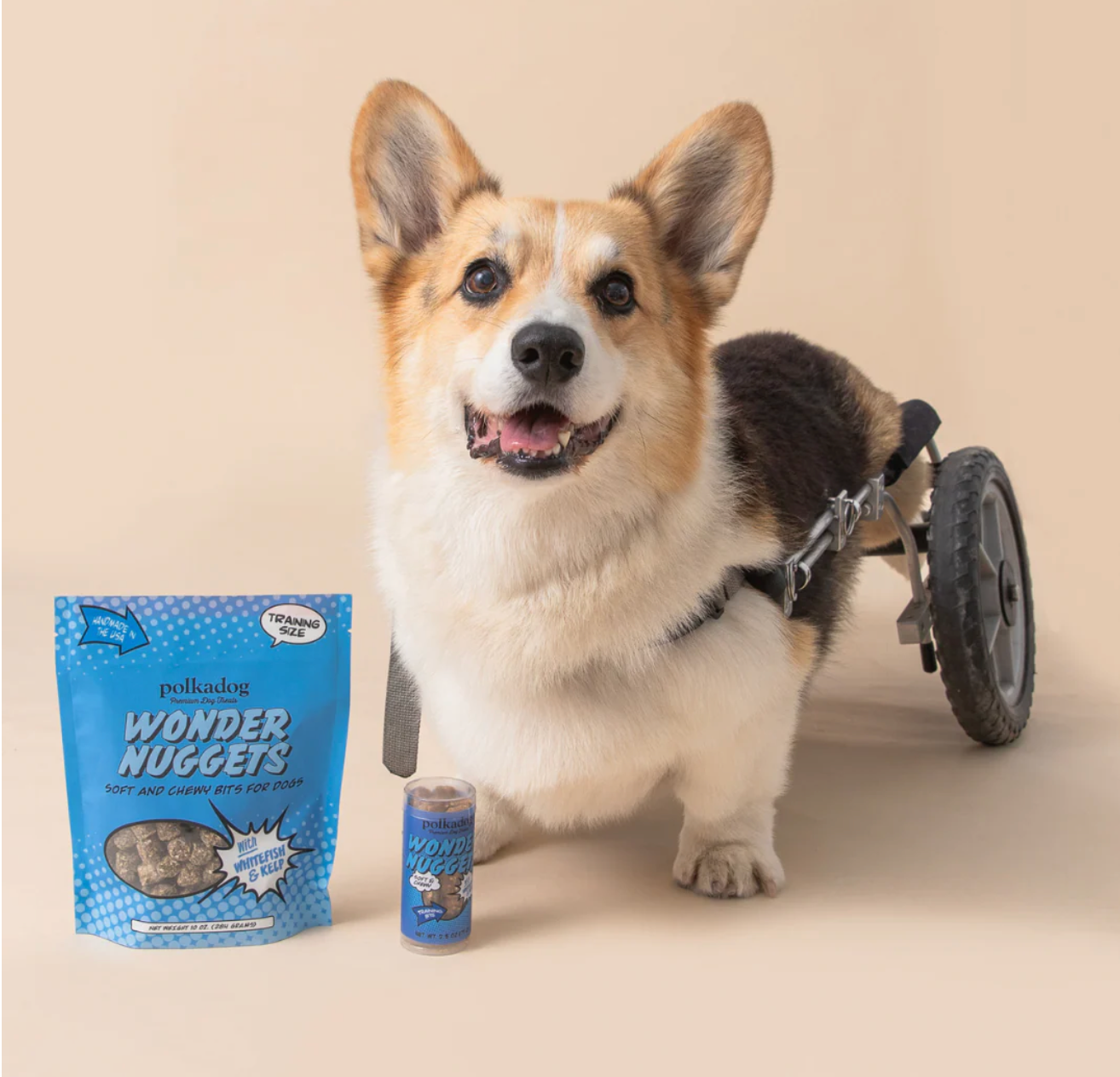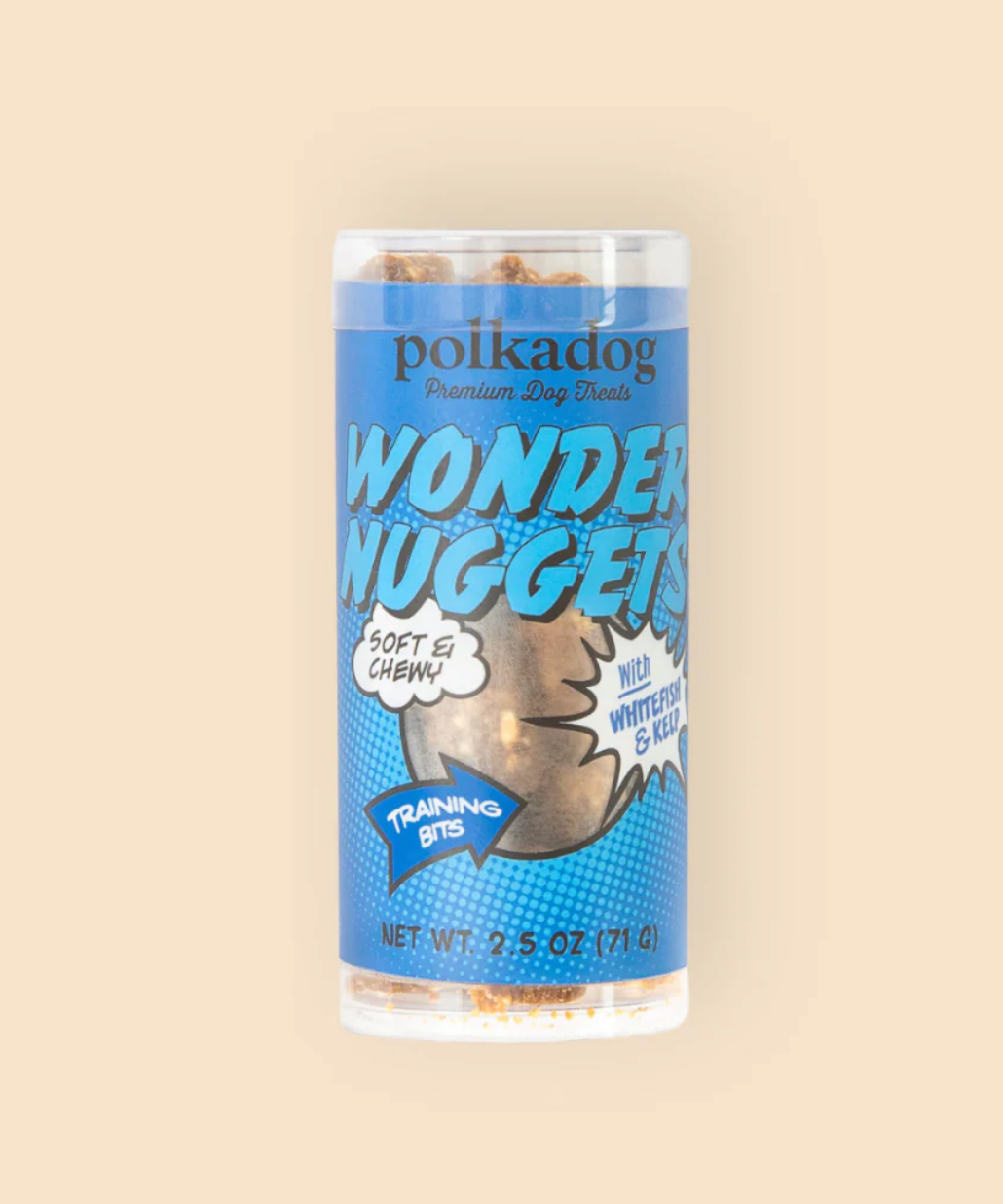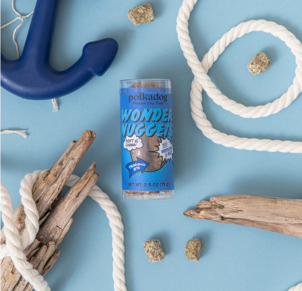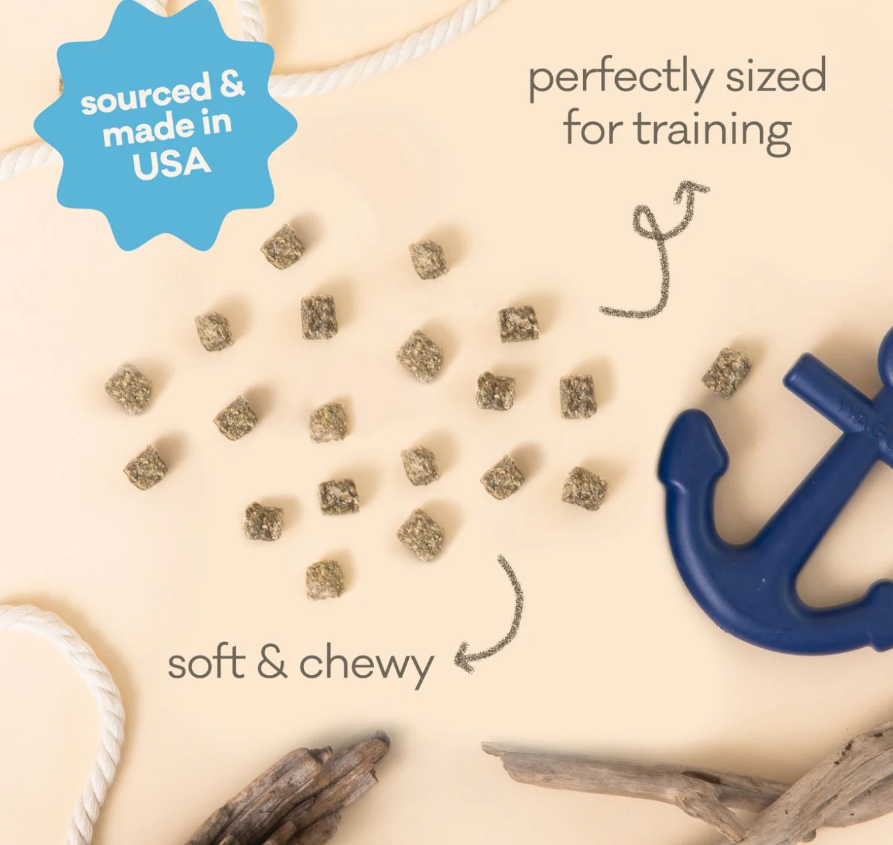 With wild-caught whitefish and climate-hero kelp from Maine in every bite, these wholesome Whitefish & Kelp dog treats are soft, easy on the stomach, and ideally sized for training rewards or quick treats on the go.