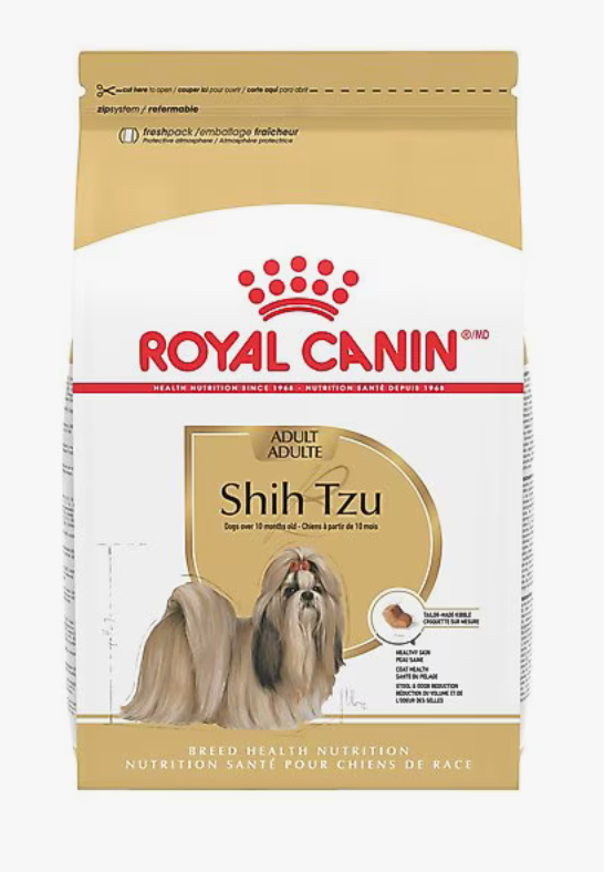 Give your canine pal the nutrition he deserves with Royal Canin Shih Tzu Dry Dog Food. This dry dog food is specialized nutrition created just for your purebred Shih Tzu. To help maintain your Shih Tzu’s skin health, this tailored diet provides a unique complex of nutrients that help support his natural skin barrier. Biotin works together with omega-3 and omega-6 fatty acids to give long, luxurious coats even more softness and shine. What’s more, this small breed dog food delivers a combination of highly digestible proteins, fiber for dogs, and high-quality carbohydrate sources to help support healthy digestion. This blend of nutrients also helps reduce stool volume. The dog kibble shape and texture are designed for your Shih Tzu’s short muzzle and underbite, making it easy for him to pick up and chew. Pair this dry dog food with Royal Canin Shih Tzu Wet Dog Food (sold separately) for a deliciously textured meal with the nutrients your four-legged friend needs to thrive.