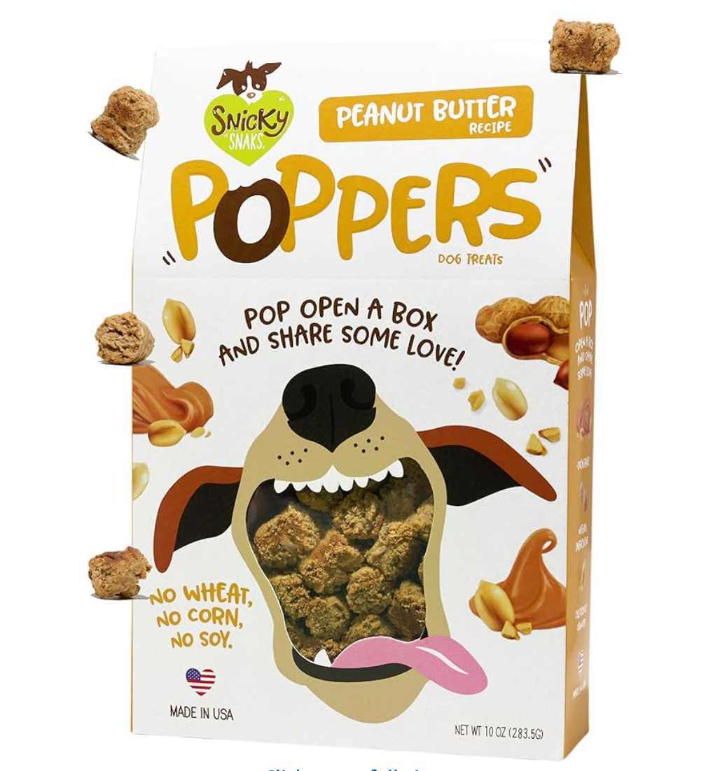 Snicky Snaks Poppers Dog Treats - Peanut Butter is backordered and will ship as soon as it is back in stock.