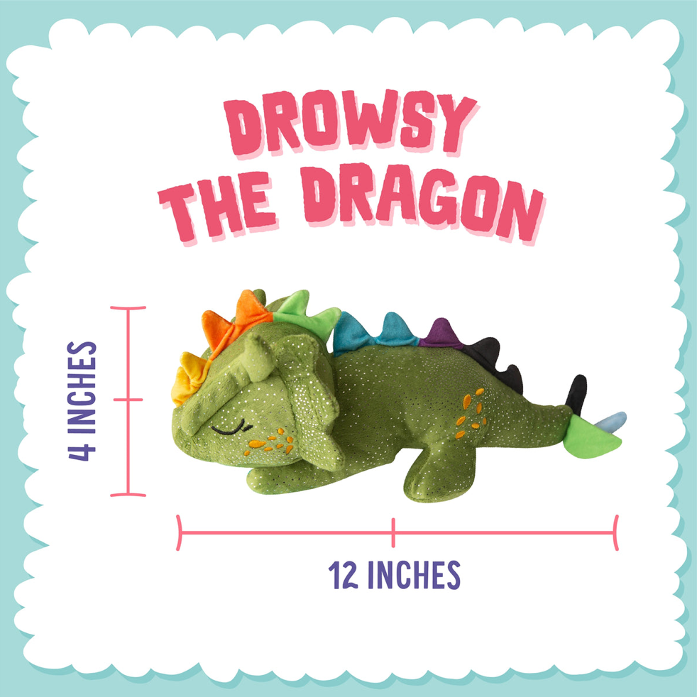 Awaken the fun in your furry friend's playtime with Drowsy the Dragon, the irresistible dog toy! Far from its name, this magical toy keeps sleepiness at bay, ensuring lively and engaging moments for your pup. With every touch, Drowsy the Dragon comes alive with enchanting crinkle and squeak sounds, captivating your dog's senses and charming their way right into your pup's heart. Perfect for play, this delightful toy promises endless entertainment and joy. All Snugarooz plush toys are made from recycled water bottles.