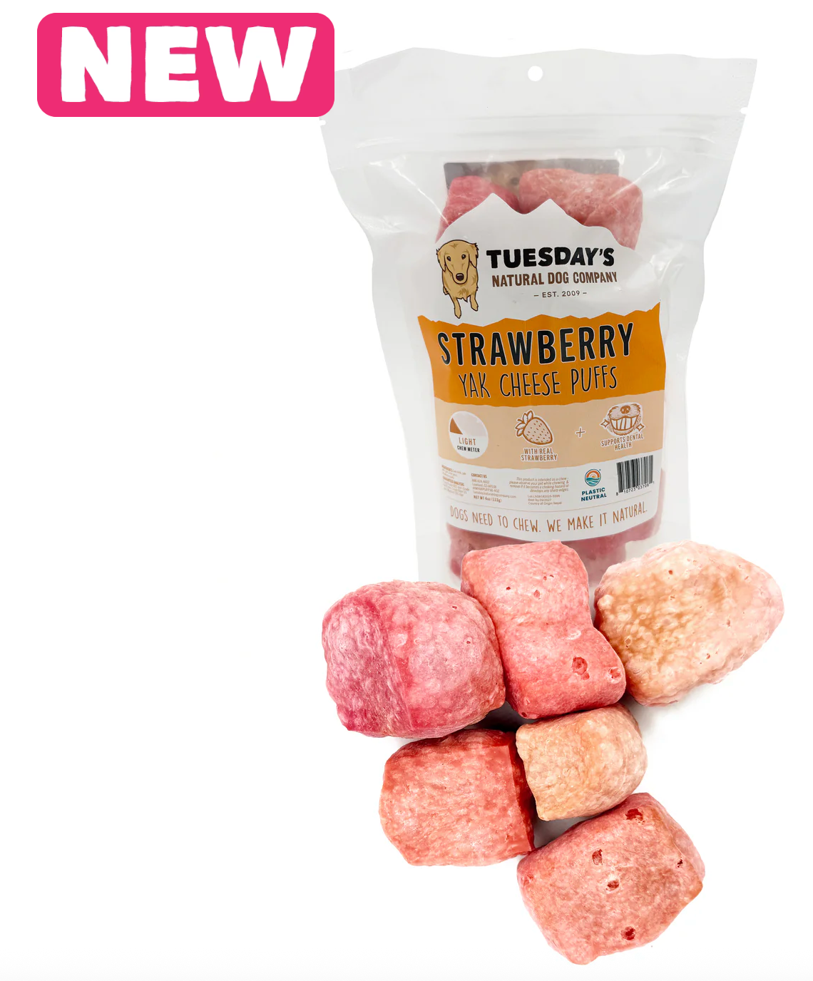 Description: These yak puff nuggets are made from remnants of our Flavored Nepalese Yak Cheese Chews with Strawberry. They been microwaved so that the texture is firm, yet crunchy. Packaged in a resealable retail ready 4 oz bag.