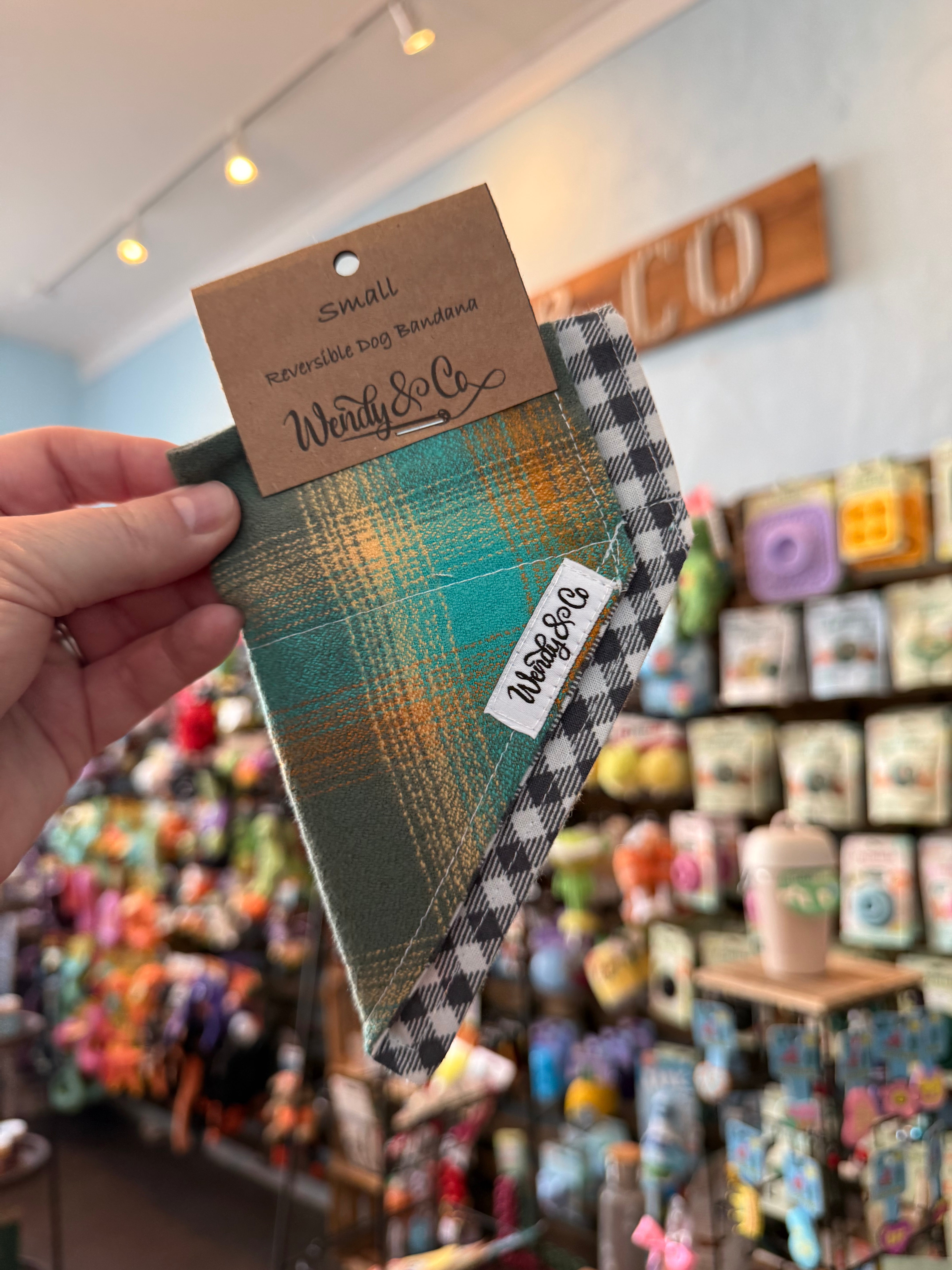 Our Over the Collar bandana slides over any collar and is fully reversible with coordinating fabrics on each side, it's like getting two bandanas in one!