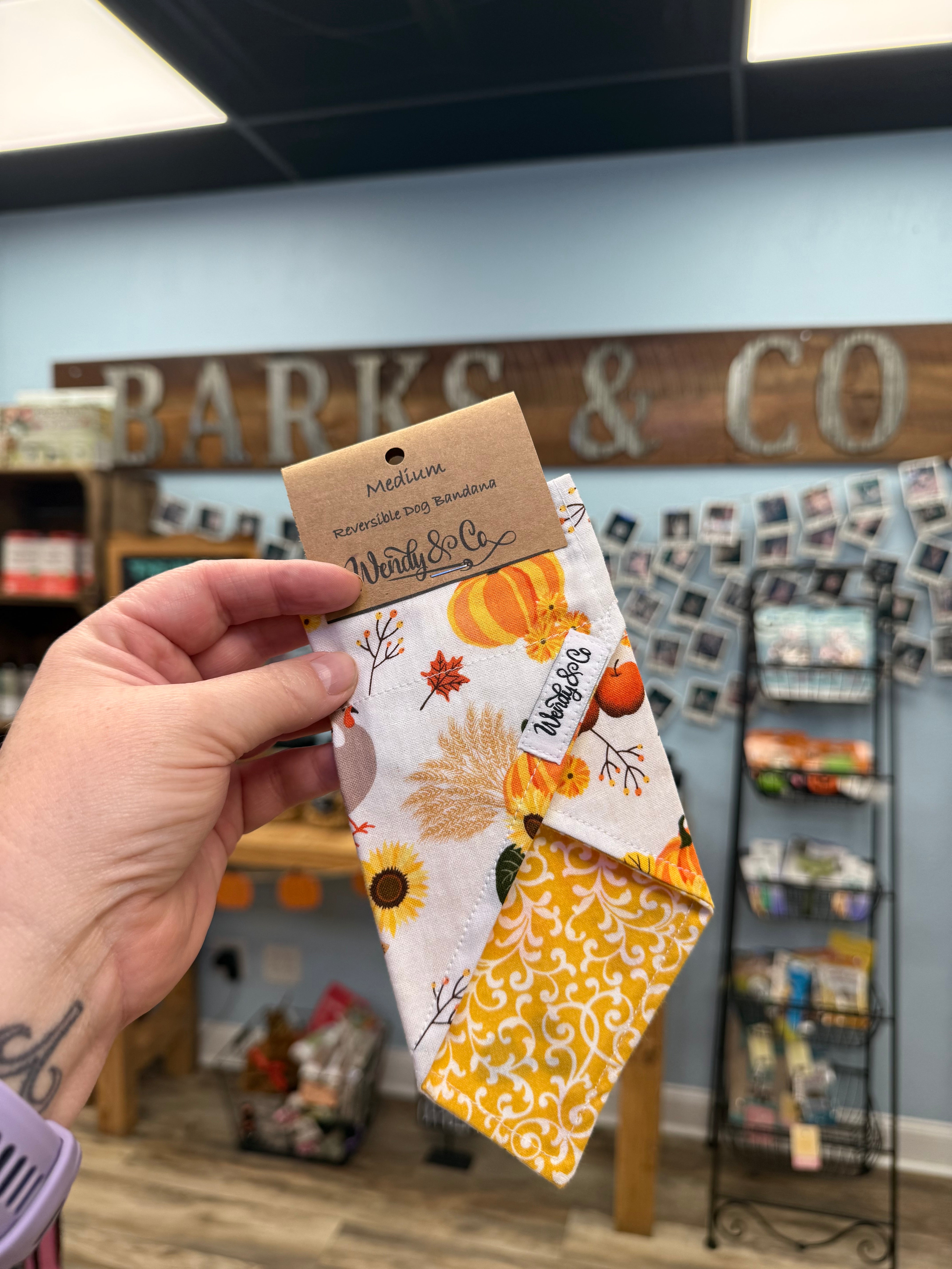 Our Over the Collar bandana slides over any collar and is fully reversible with coordinating fabrics on each side, it's like getting two bandanas in one!