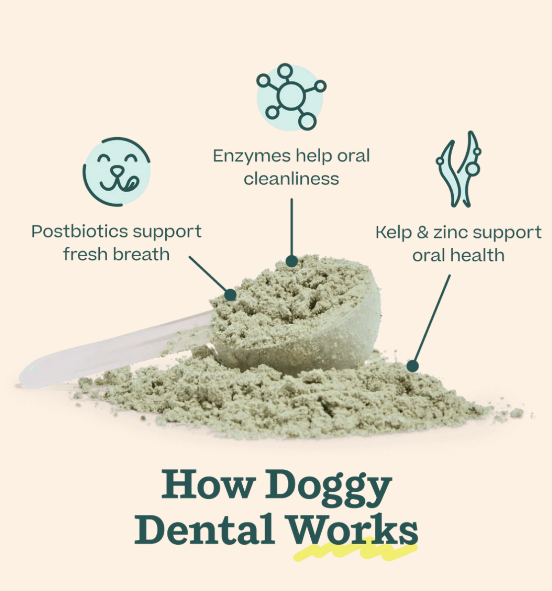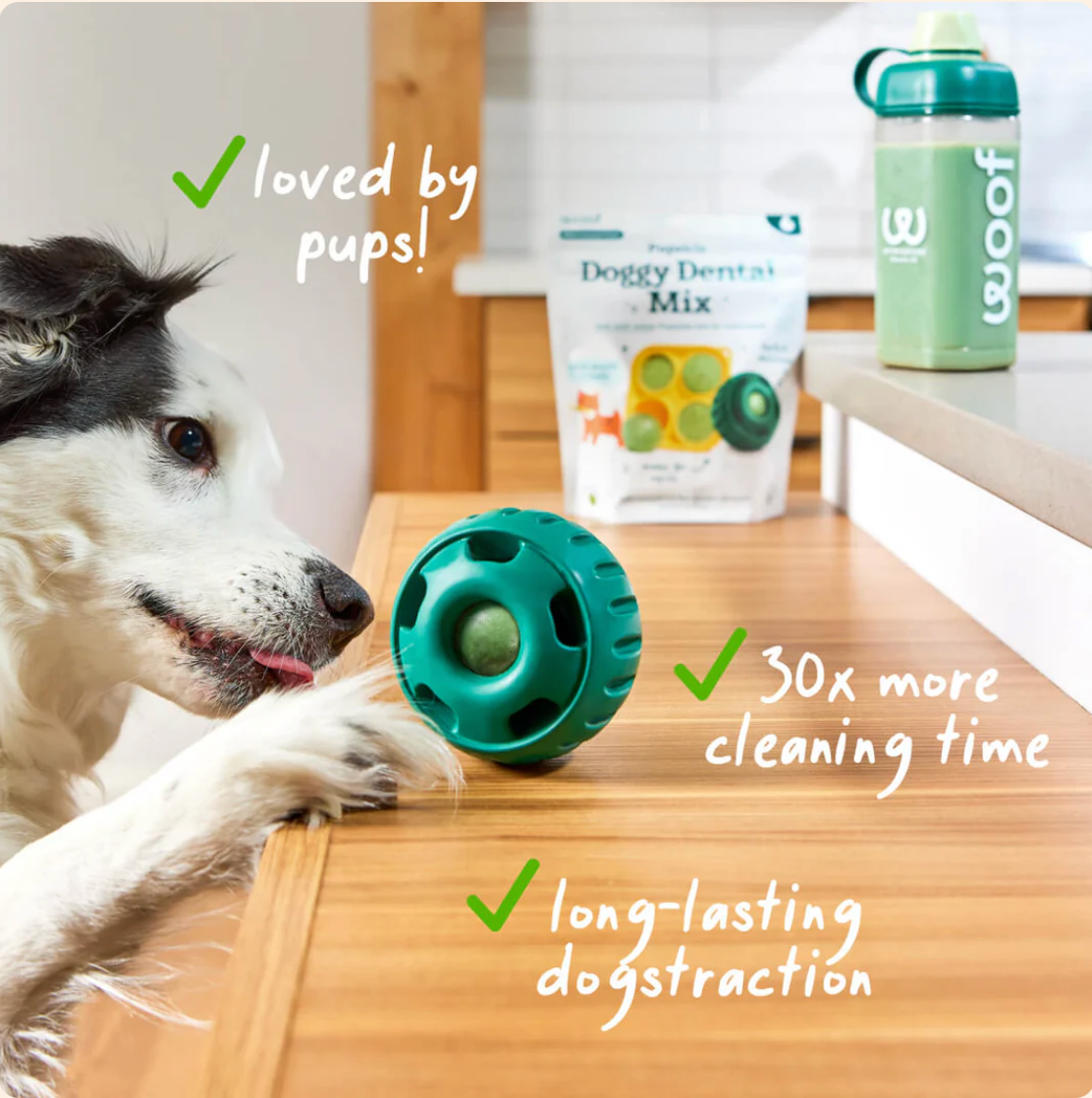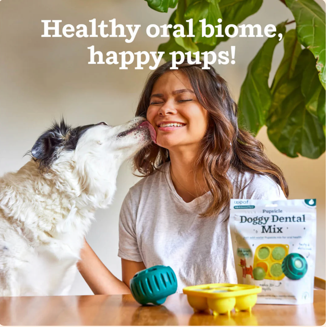 Over 90% of dogs show signs of periodontal disease by age 2, but Doggy Dental Mix’s clinically-backed ingredients can help control plaque and tartar when used as a daily dental habit. The OraTech® dental enzyme blend helps to balance the oral microbiome by targeting the bad bacteria that impact dental health, allowing beneficial bacteria to thrive–while the Pupsicle increases the time the enzymatic cleaners have to work. That’s one less thing for you to worry about, and one more way to connect with your pup through play!